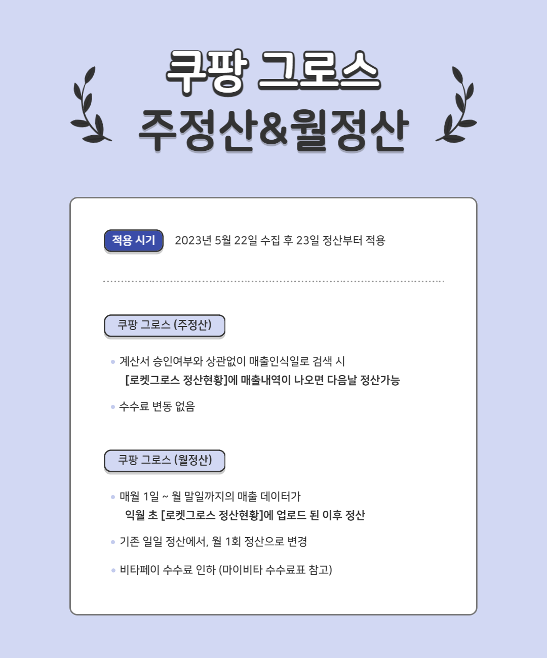 2023년 5월 22일부터 비타페이의 ‘쿠팡 로켓그로스 선정산’이 개편되어 운영될 예정입니다.