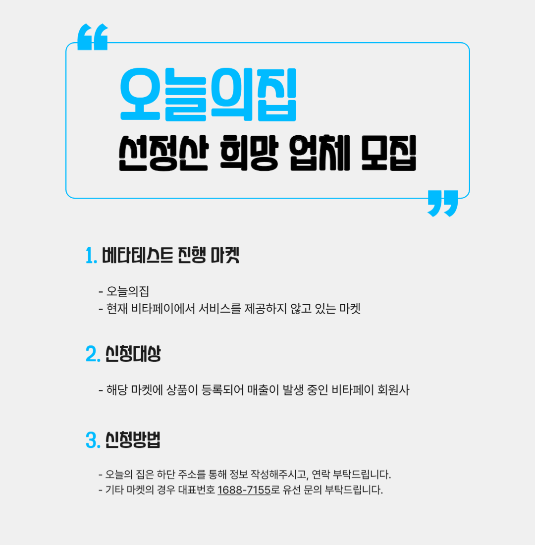 2023년 하반기 신규마켓 오픈에 앞서 베타테스트 업체를 모집합니다.